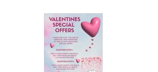 From now until Feb 28 we have offers on the 10x30 or 20x20 canopies. Rent a canopy get *tables & chairs free. See Flyer for more info.